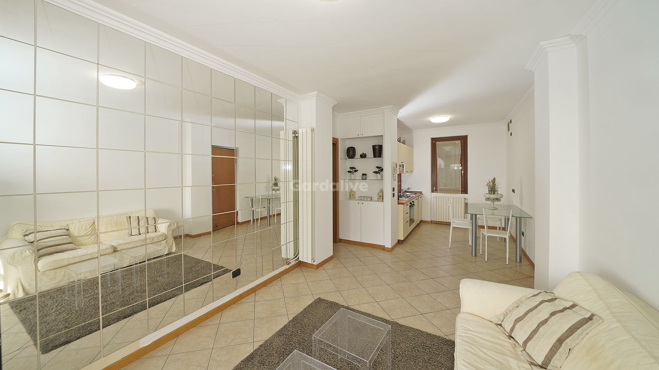 L'ingresso si apre sulla zona giorno openspace, composta da un angolo cottura e dalla zona relax, che accede direttamente al fantastico ed abitabile portico esclusivo, caratterizzato da un'ottima privacy. Questa zona esterna, con scorcio sul Lago di Garda, offre la possibilità di godere dell'aria e delle suggestive viste panoramiche. Inoltre, l'orientamento verso sud garantisce luminosità per l'intera giornata.