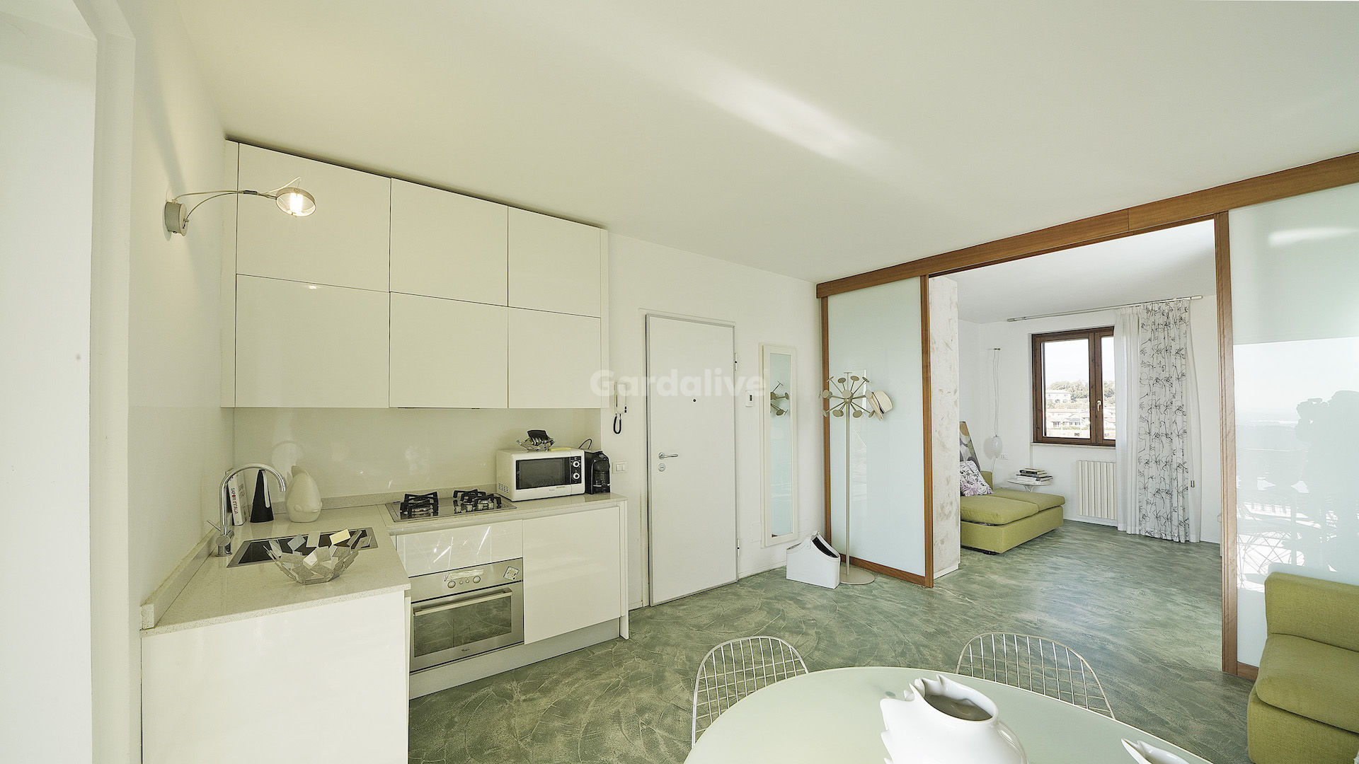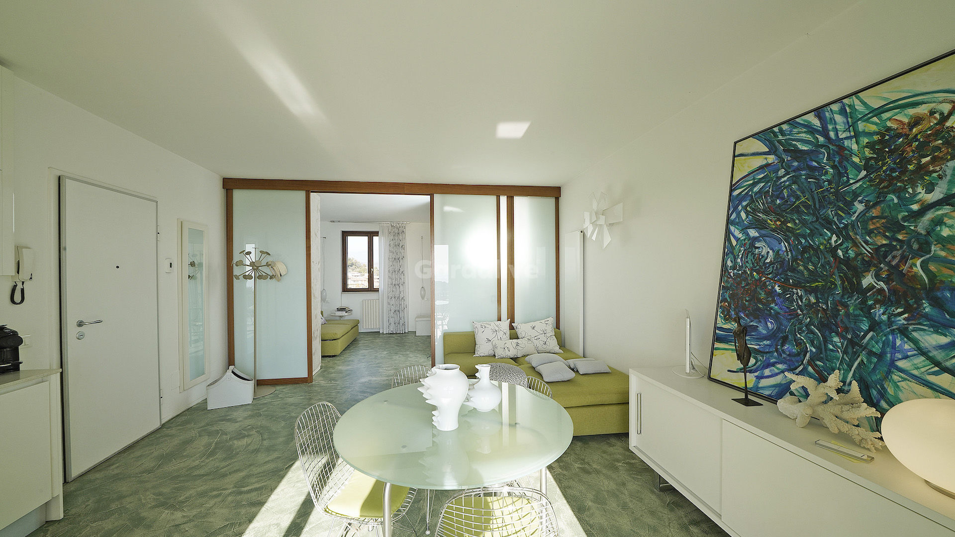 L’appartamento si apre su un’ampia e luminosa zona living con cucina a vista e grande vetrata scorrevole che conduce alla loggia, perfetta come estensione della zona giorno per pranzi all’aperto e momenti di relax. La zona notte comprende una camera attualmente arredata con divano letto e un bagno finestrato con doccia, accessibile sia dalla camera che dal soggiorno grazie a porte scorrevoli progettate da un architetto per garantire privacy e funzionalità. L’intera abitazione è stata completamente ristrutturata con particolare attenzione ai dettagli e al comfort.