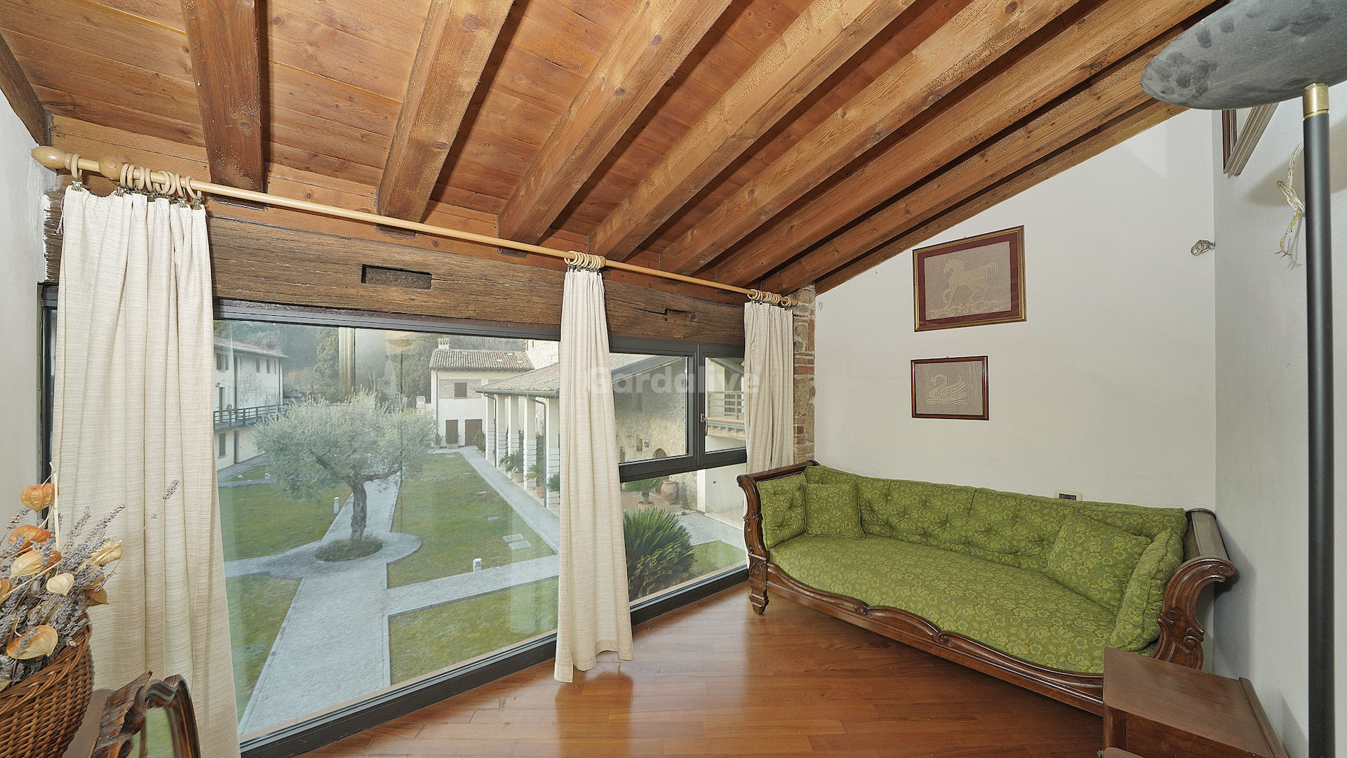 Salò, Lago di Garda - A pochi passi dal centro della rinomata cittadina di Salò, nella località di Cunettone, sorge una dimora dal fascino senza tempo, all'interno della quale proponiamo una soluzione cielo-terra dallo charme tutto italiano. La dimora é circondata da un parco incantevole, dove la natura è protagonista, caratterizzato da alberi secolari e un grazioso laghetto con ninfee e pesci rossi.