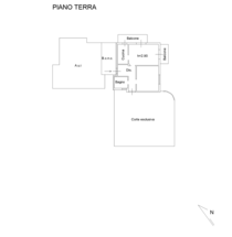The bright and spacious living area is enhanced by large windows that create a seamless connection with the outdoors. The living room opens onto a comfortable balcony, ideal for relaxing moments, and connects to the separate, functional, and well-equipped kitchen. A second balcony overlooks the private outdoor area, where a vegetable garden can be created.